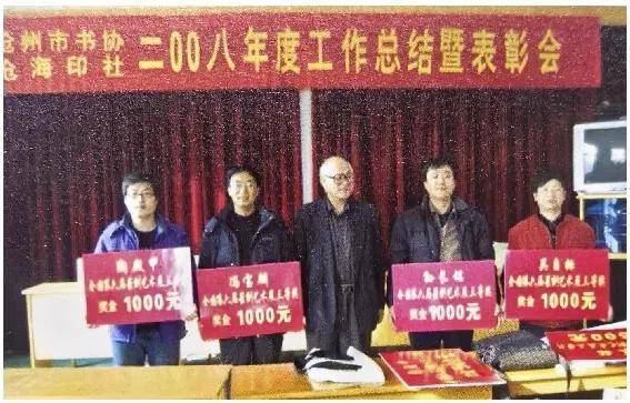 韩焕峰先生对家乡的贡献远不止于艺术领域。在黄骅的城市建设中,他为人民公园无偿篆写碑文勒石,多次为保护历史文化建言献策。在市政府开展的文旅活动中,他现场创作的篆刻作品《文旅黄骅》成为宣传片的压卷之作,最具特色的文化名片。因韩先生对家乡文化发展做了突出贡献,2016年9月,黄骅市政府专门为他颁发了“文化贡献奖”,他亲自回家乡参加了颁奖大会。市委书记评价韩焕峰说:韩老不仅是我们黄骅的文化标杆,更是一种精神象征。他让我们懂得,一个地方的发展不仅需要经济数据,更需要文化灵魂。他将个人艺术追求与地方发展紧密结合,体现了一位艺术家的社会担当与乡土情怀。