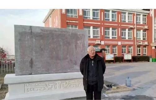 然而,韩焕峰先生其位愈崇,其心愈下,在攀登艺术高峰的同时,他从未忘记回馈养育过他的故乡。2021年12月31日,黄骅市周青庄小学校园迎来了一份特殊的新年礼物“校史碑”。这通碑重达11吨,由韩先生亲自撰文并监督制作,耗时近一年,耗资六万元,全部由韩先生无偿捐赠。碑文计1200字,用四言韵文写成,概括了建校73年的发展史。韩先生说:“少年强,则国强”,我捐赠“校史碑”不仅是感恩母校的培养,更重要的是激励学子们奋发学习,早日成为国家有用之才,造福家乡和社会。当记者问他捐赠“校史碑”动机时,他深情地答道:“回报家乡,感恩母校。”简单的八个字,道出了这位赤子对家乡和母校之情怀。