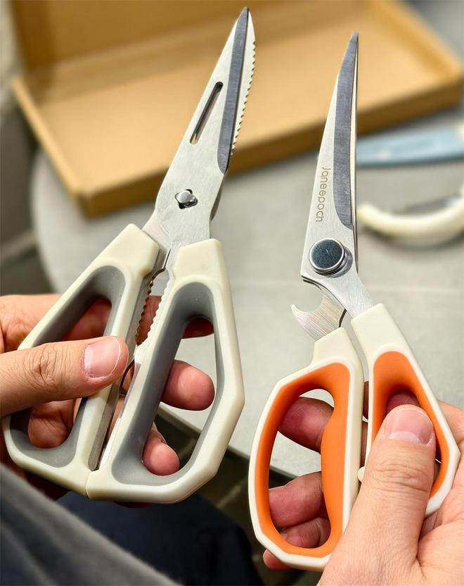大的剪刀刃口较厚实,用来处理禽类、海鲜的外壳和骨头轻而易举,用完后还可以将两片剪刃拆卸下来单独清洗,避免缝隙中藏污纳垢。