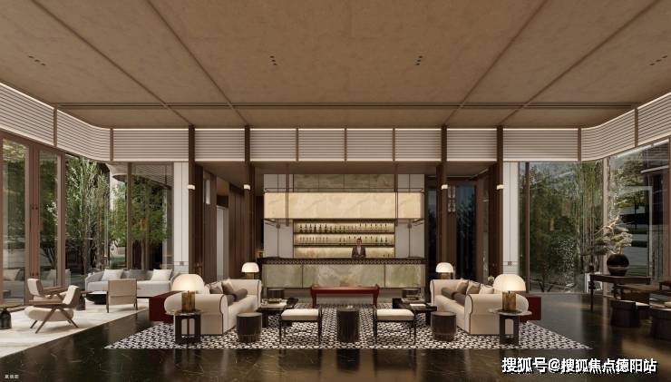 · 六重礼序:首层大堂艺术透光石材、水刀拼花石材配置,勾勒艺术酒店式气韵