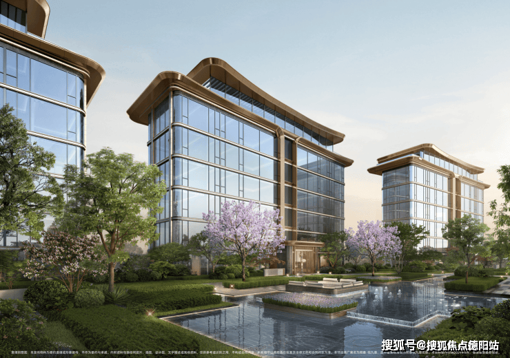 ▌【景观篇】 14%软景中水景占比约14%,媲美百亩级大盘水景规划引水入园,打造三大中庭水景,总计约1400㎡水系面积。甄选紫薇、泰山油松、蓝花楹等全球名木,匠造九章景观节点。