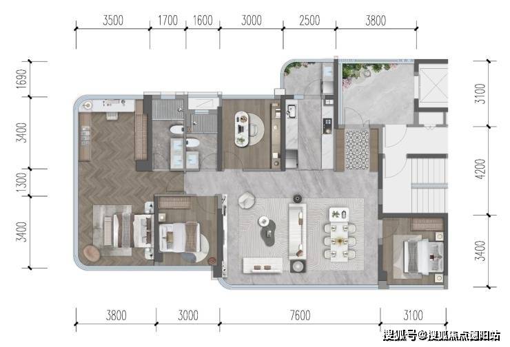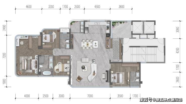 ▌明星户型③:建面约189㎡四房两厅三卫(高层)· 楼尊视野 中庭楼王位置,尽享小区最佳中庭景观和超大楼间距,南北朝向,采光通风俱佳· 社交方厅约76㎡LDKB交方厅,满足社交、聚会等场景,开放式中西厨+灵动导台· 越级享受开间超7米,媲美市场上250㎡豪宅尺寸感,超大会客厅尽显豪宅气派· 光厅入户约12㎡光厅入户,独立拼花玄关,双侧收纳空间,满足全家需求· 中西双厨厨房约4.5米超大开间,U型设计,中西厨联动,布局合理,尺度开阔· 星级套房星级双套房设计,洞悉家庭多元所需,约42㎡环幕主卧超大套房,行政级衣帽间尽显尊贵,独立式浴缸礼致峯范人生· 超大空间实际可利用空间约建筑面积的103%