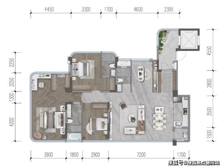 ▌明星户型①:建面约143㎡四房两厅三卫(洋房)· 视野绝佳临河道公园,视野开阔观景效果绝佳,享受天然后花园· 业态稀缺7层真洋房,板式结构,核心地段城市稀缺产品· 私享入户约11㎡私享入户花园,约270°转角光厅,采光视野绝佳· 墅级层高约3.3米别墅级阔尺层高,空间感强· 双套设计四房三卫双套房设计,满足三代同堂,二胎家庭功能需求· 阔尺厨房约9㎡阔尺厨房,可加装岛台设计中西厨· 超大横厅约7.2米LDKB一体横厅,多功能房灵活可变空间,营造板式通透对流空间体验· 奢享主卧约35㎡主卧套房,约10㎡独立衣帽间+梳妆台,独立卫浴且可容纳浴缸,奢侈享受· 超大空间实际可利用空间约建筑面积的108%,天新TOP级奢享